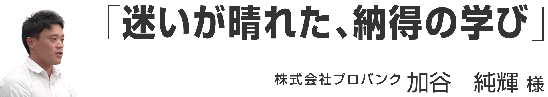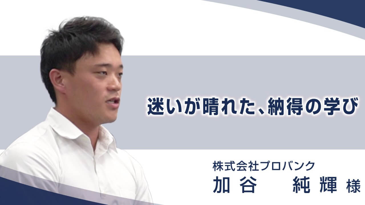 「迷いが晴れた、納得の学び」 株式会社プロバンク 加谷 純輝 様