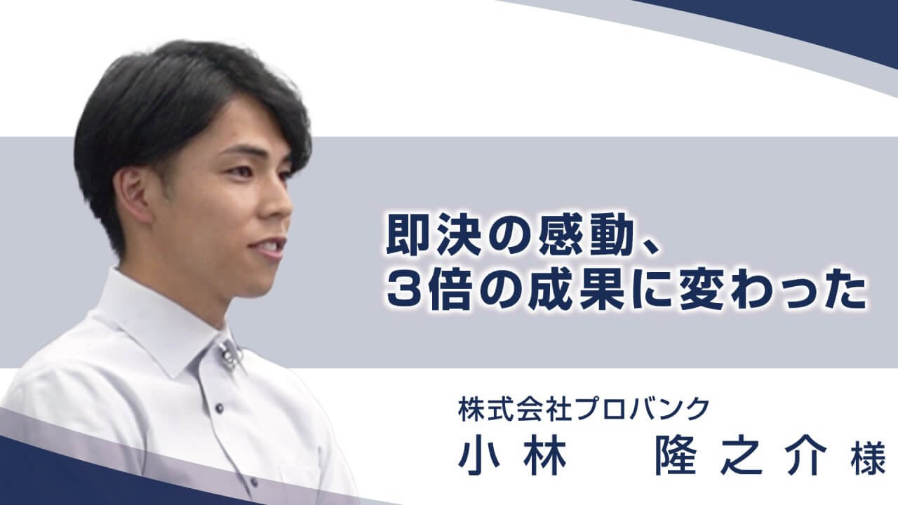 研修を受ける前は、本当に即決なんてできるのかと思っていました。でも、実際に受けてみて、研修が終わった直後に即決で契約をいただけました。これは本当にすごい結果が出たなと感じました。