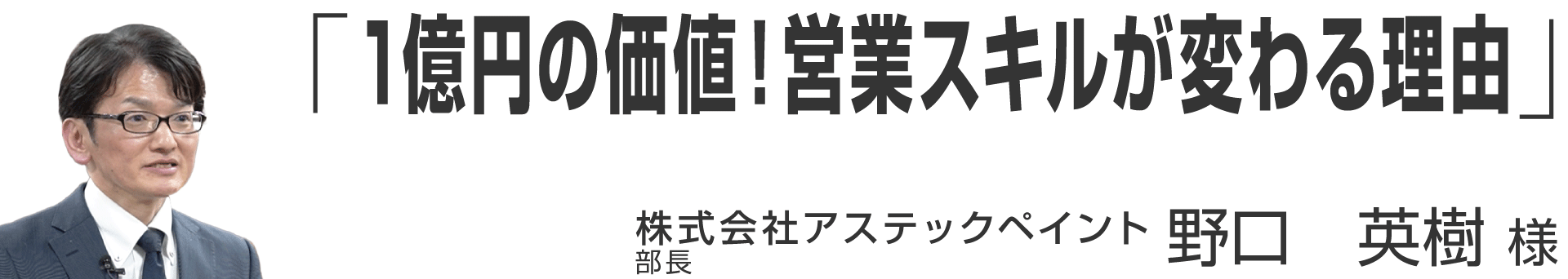 「1億円の価値!営業スキルが変わる理由」 株式会社アステックペイント 部長 野口 英樹 様